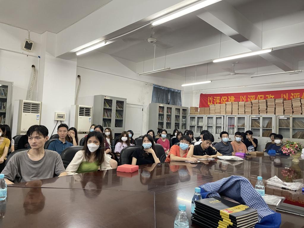 分享会地点为综合楼401会议室,晚上8时,威廉希尔中文网站有意向考研的近50名学生前来聆听学习,分享会由陈咏妤、李林、杨雨霏三位老师共同组织。