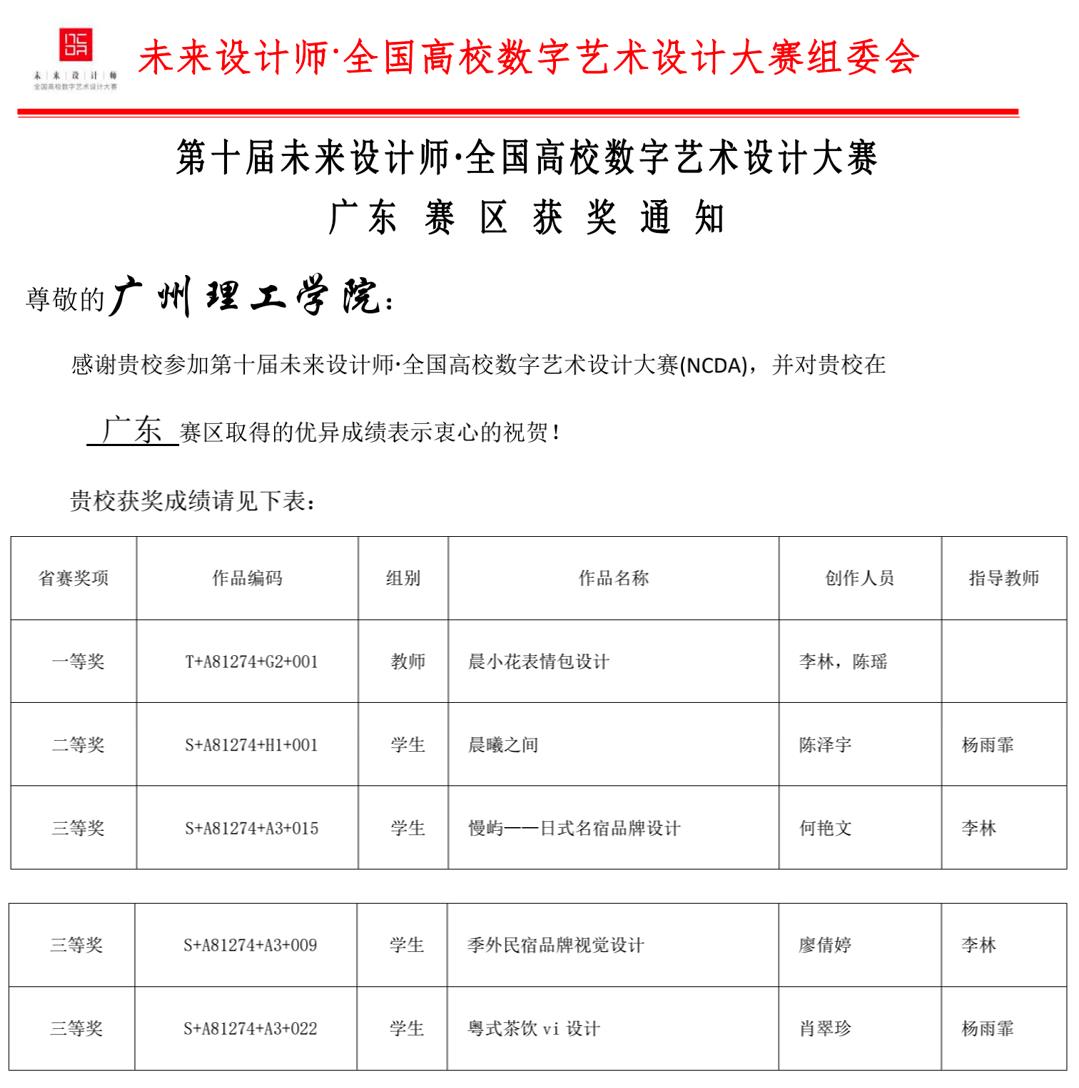 未来设计师·全国高校数字艺术设计大赛广东赛区获奖名单