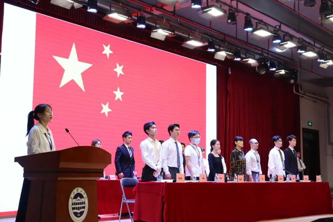 主持人宣布大会开幕,全体成员起立奏唱国歌。