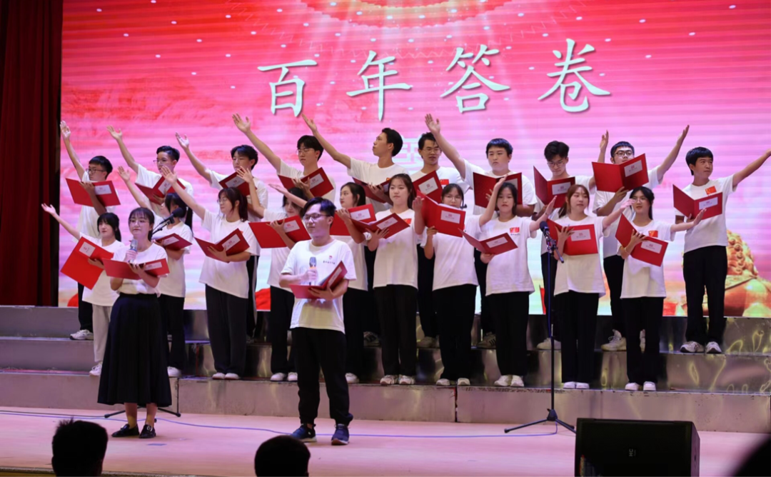 本届读书会活动,威廉希尔中文网站师生代表上台朗诵、演绎了红色经典——《百年答卷》,读书活动由辅导员江丽霞、黄禹彰领诵,师生们演绎了一段段慷慨激昂的革命场景,诠释了我院青年师生爱党爱国的情怀与蓬勃的朝气。过去百年,“共产党人带领全国人民,抛头洒血,开辟了一片崭新天地”。如今,我们在为实现社会主义现代化而奋斗,《百年答卷》对于我们加强党史教育及学习,扬帆起航新征程具有重要意义。