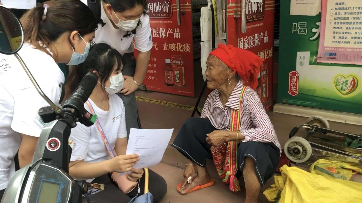 “三下乡”团队瑶族成员使用瑶语向当地居民进行采访