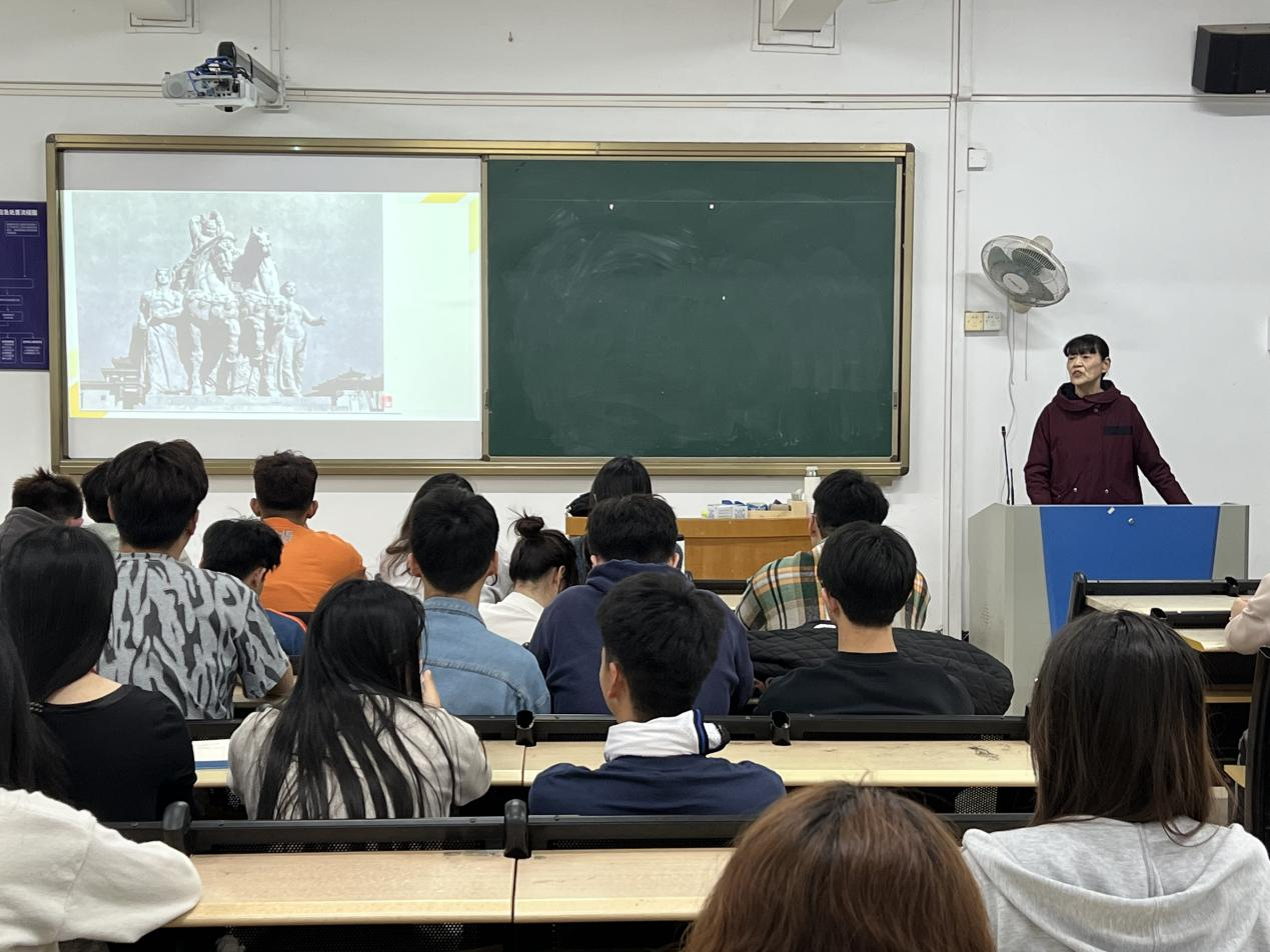 尚华院长从红色文化与革命精神出发,以“人民英雄纪念碑”、“庆丰收组雕”、“首都机场壁画”等红色经典公共艺术为案例,为同学们生动讲述了一幅幅经典作品背后的重要历史事件。每一幅作品的创作,具有鲜明的时代特色,是对中国气派、中国风格的完美诠释,体现出红色雕塑的时代感与民族性。