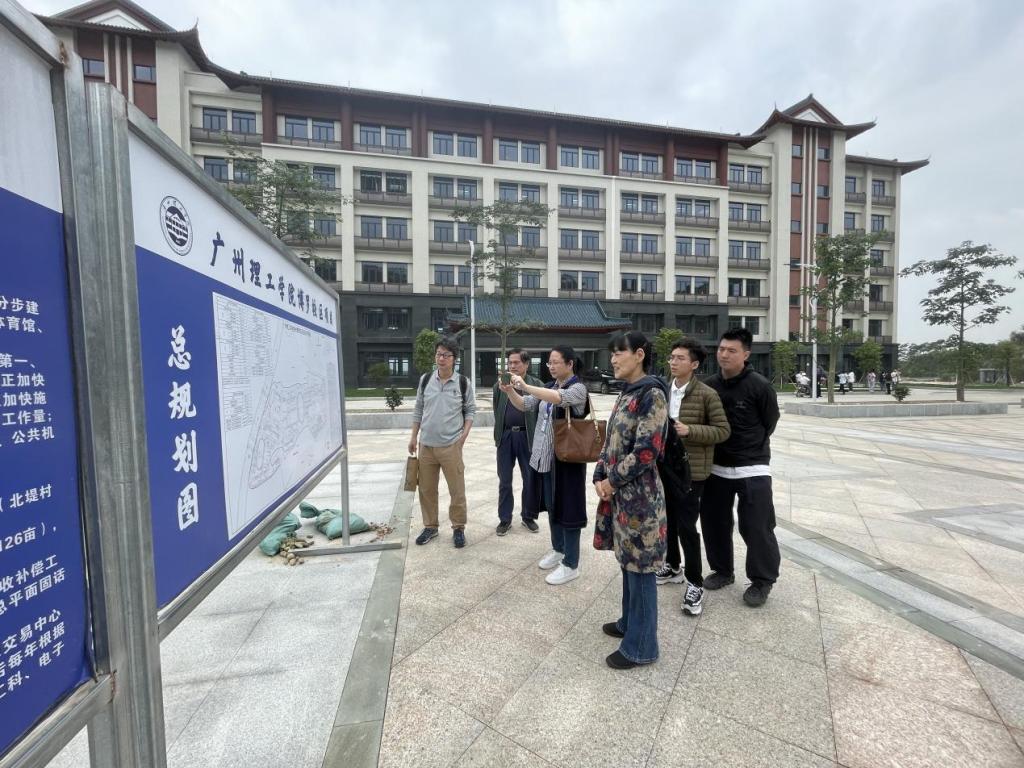 随后,由尚华院长带领教师团队一行实地考察已建好的教学楼、图书馆、行政楼、学生宿舍楼等区域,在其过程中,老师们纷纷以公共艺术、环境设计规划、景观植物配置等问题发表自己的见解,为下一步申请校本项目作好前期调研工作和方案构思。