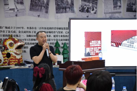 揭牌仪式后,在金天成印刷包装城杨东峰总经理带领下学生们进入研学实践报告厅,首先由杨东峰总经理致欢迎辞,鼓励学生们将创新与实践相结合,希望学生们在本次研学活动中能学以致用。