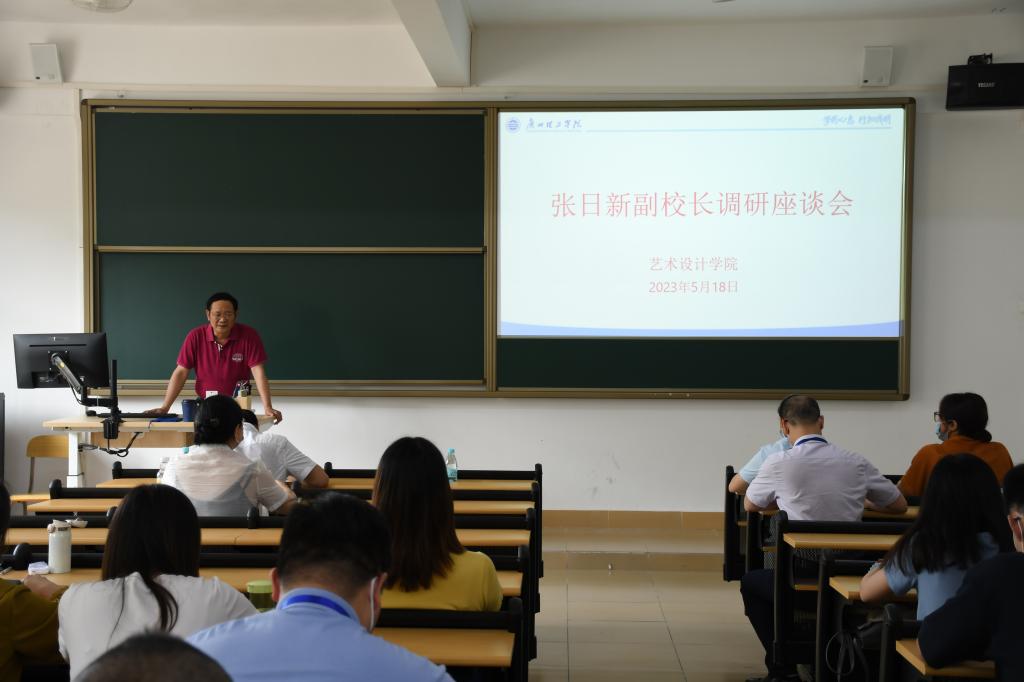 张日新讲到学校的高质量发展是以二级学院和全体教师的高质量发展为基础。他指出,教师在项目选题上要紧跟时政热点,利用自己的学术成果支撑项目申报,学院要联系专家对项目申报书进行指导和点评,以此提高项目申报的成功率。他强调,在学科建设方面,优质学科必须要有好的科研成果,年轻教师要利用自己的优势,积极参与科研工作。