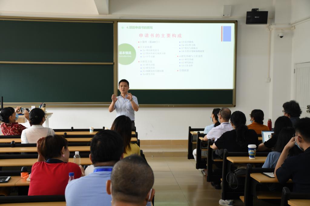 此次经验分享,尧副教授详细介绍了不同科研类型及其研究目的,并从项目申报的选题、团队协作、研究方法和注意事项等讲解了他在科研项目申报取得的经验。此外,尧副教授还重点讲解了科研项目的评审标准,包括项目的科学性、先进性、创新性和申请人的以往成果等。最后,他为大家展示了自己以往的项目申报书和结项报告,并细致回答了教师们的提问。