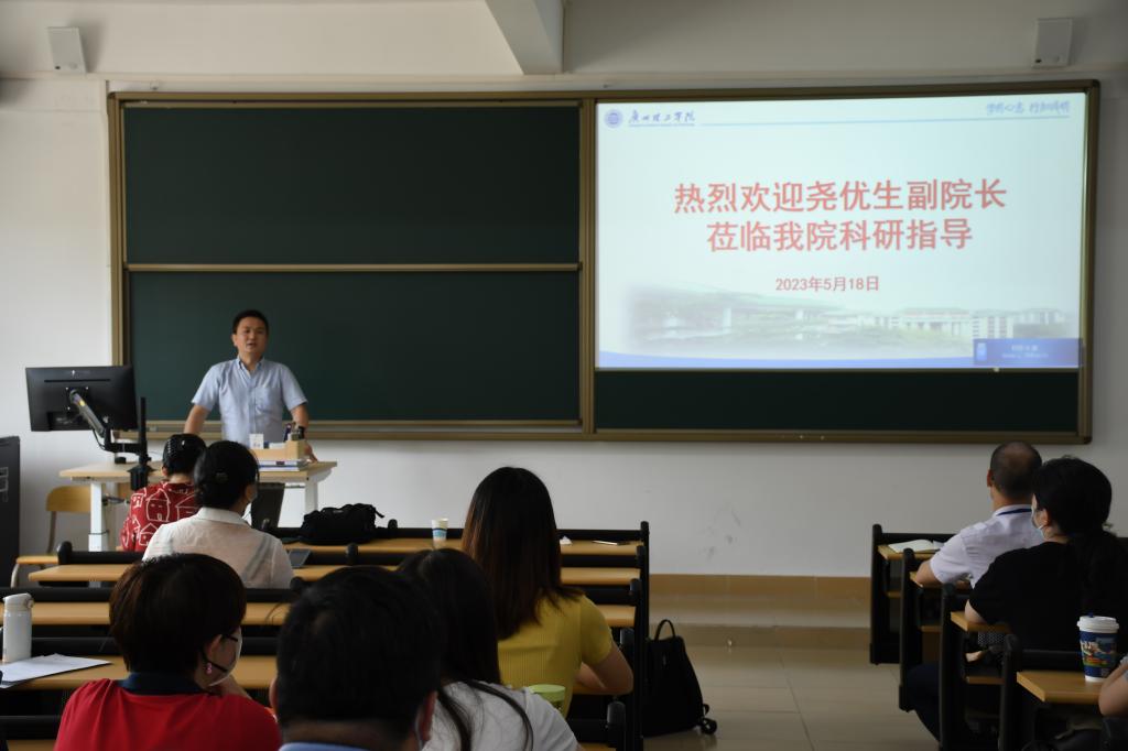 为提升威廉希尔中文网站教师科研能力,引导教师积极参与科研项目申报。5月18日,威廉希尔中文网站在综合楼401教室举办了科研项目申报经验交流会。我院特邀仲恺农业工程学院威廉希尔中文网站副院长、硕士生导师尧优生副教授做经验分享,会议由尚华院长主持,学院全体教师参会。