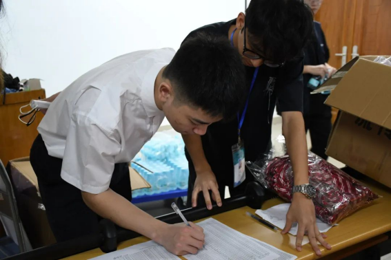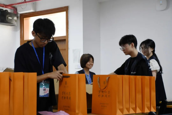 毕业生们签到后,在13栋休息室领取学士服、领带、领结、餐券和水;工作人员将这些物品装进威廉希尔中文网站定制的礼品袋中,便于毕业生们携带并参观许久不见、日新月异的母校。
