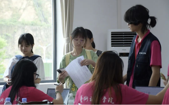 在志愿者的带领下,新生们陆续到达迎新大本营办理报到注册、资料提交、宿舍登记等入学手续。迎新志愿者们积极为新同学们解答疑惑并协助搬运行李,充分展示我院互帮互助的优良传统,让来自五湖四海的新生们充分感受到艺设大家庭的温暖。