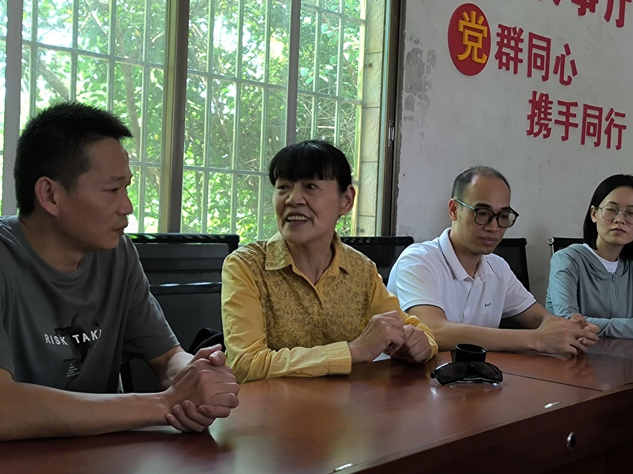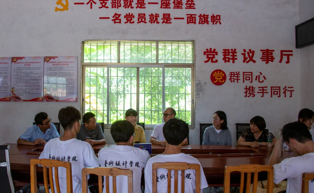 龙建村党总支部书记谢北文对尚院长、颜副书记的到来表示热烈欢迎。他说当地对教育十分重视,支持大学生到龙建村开展暑期实践活动,会尽可能为实践团提供支持,同时也肯定了艺心筑梦实践团的墙绘作品。