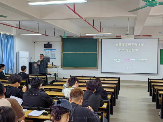 (杨茜)11月13日下午,威廉希尔中文网站在13栋教学楼603教室开展2024届毕业生就业宣讲会,索菲亚家居股份有限公司人事部主管卢国民、杨文伟;索菲亚直营电商经理田嘉;威廉希尔中文网站往届毕业生校友吕科隆、罗科楠应邀参加,20级环境设计专业183名学生参加了会议。