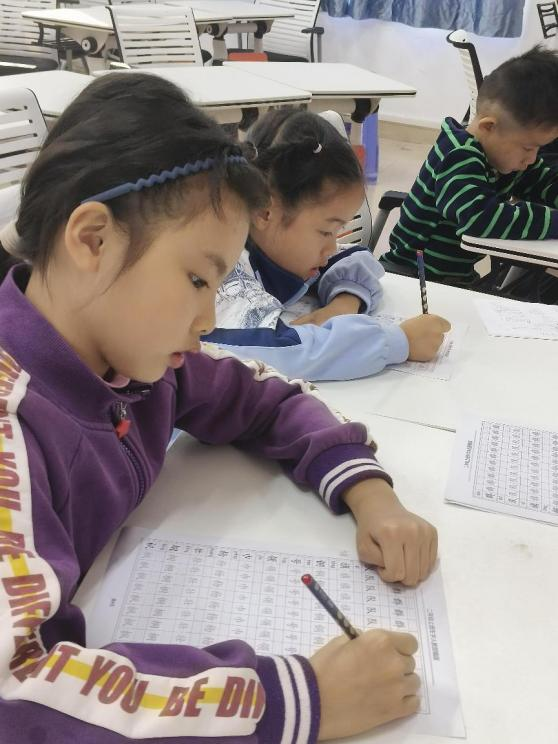书法小班本节课主要学习了汉字的笔画和基础书写,生字有:“群,队,旗,铜,号,领,巾,杨”。课堂上通过描字练习巩固书写基础,掌握汉字的笔画顺序,学会分析书法结构。