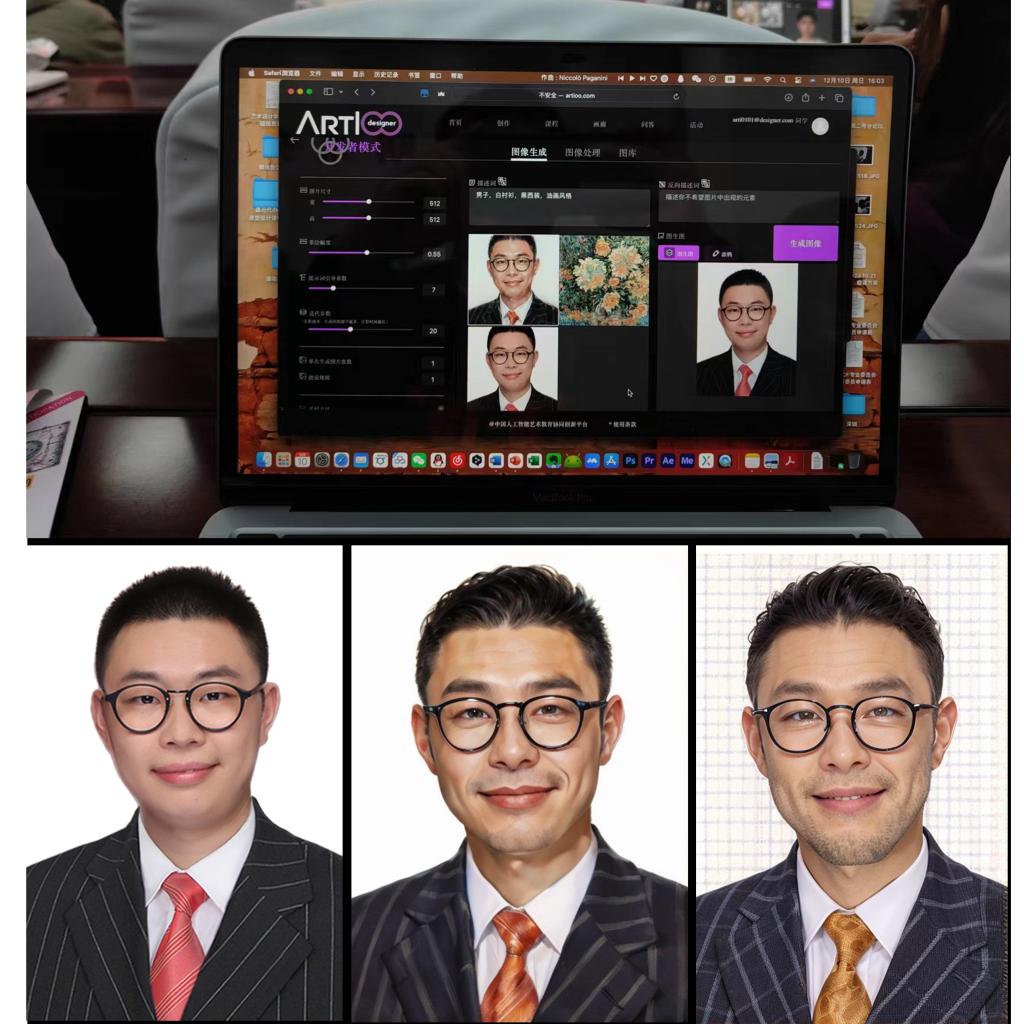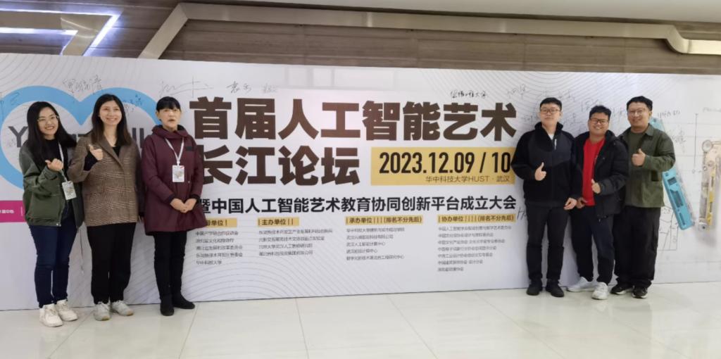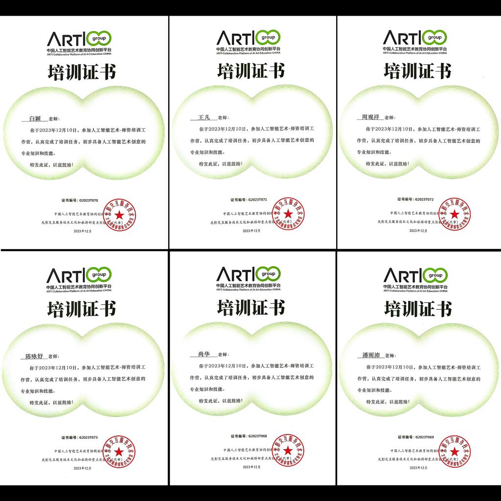 (潘雨沛)2023年12月10日,威廉希尔,威廉希尔中文网站,WilliamHill官网尚华院长、白颖主任、陈咏妤主任、王凡博士、周观祥老师、潘雨沛老师六人在华中科技大学参加了全国高校人工智能艺术训练营。训练营上午邀请了多位教育部数字媒体教指委专家开展人工智能专题讲座。下午开展了五个多小时的工作坊,对ARTI designer人工智能艺术教育协同创新平台进行了详细的教学与实践。威廉希尔中文网站六位老师完成学习,顺利结业。