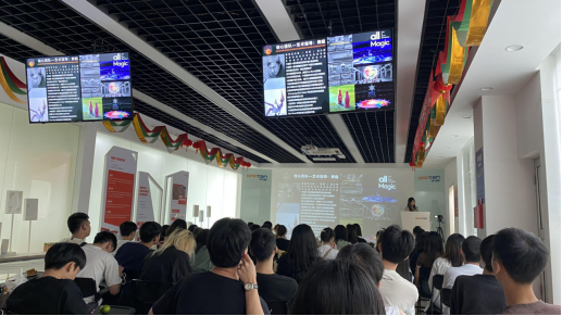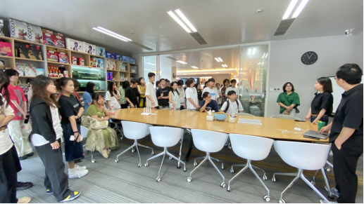 同学们在公司负责人的带领下参观了展厅,认真倾听负责人讲解公司曾经做过的品牌项目,了解到公司坚持对设计本身的思考与探索,并关注设计方法论的建设和研究,收获颇多。