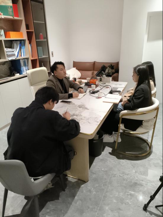 郑锶岳,现任黄村索菲亚门店总经理一职。在访谈中,他说起上学时的经历和一些收获。寻访小组的来访,他热情地回答了问题,特别是关于即将面对社会的学弟学妹们表示:“不要太焦虑,多尝试,多从自己感兴趣的方向去入手。”访谈的最后,郑锶岳师兄带着寻访小组的学生们参观了门店,并表示可以帮大家提供实习就业的机会。