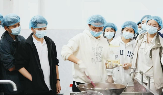 活动现场,桌上摆放着各种制作青团所需的材料,如糯米粉、豆沙馅、艾草粉等。学生们在饭堂工作人员的指导下,认真地学习着如何调配材料、揉捏面团、包裹馅料等制作青团的技巧。同学们分工协作,有的负责和面,有的负责调制馅料,还有的负责拿去蒸煮。大家互相学习、互相帮助,共同完成了青团的制作。在制作过程中,大家一边动手实践,一边交流心得,现场气氛热烈而和谐。同学们不仅锻炼了动手能力,还学会了团结协作、互相尊重的精神。