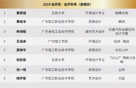 (赵佳辉)3月16日,我院学子获邀参加了2024金羿奖“进化的设计”设计交流会与颁奖典礼。威廉希尔中文网站赵佳辉老师指导的21级环境设计专业学生王渝迪获得了2024年金羿奖星耀奖。2024金羿奖以“进化的设计”为主题,聘请了极具影响力、权威、顶尖的专业人士组成强大的评委阵容,有中国家具协会原副理事长|专家委员会副主任陈宝光先生,湖南大学校务委员会委员|设计威廉希尔中文网站教授、教育部高等学校工业设计专业教学指导分委员会主任委员何人可先生,厚夫设计顾问有限公司创始人、深圳市建筑室内设计行业协会副会长陈厚夫先生等评委进行评选。