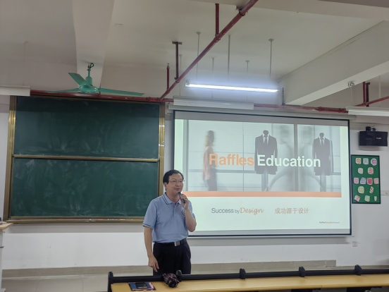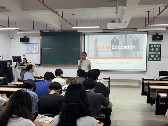 新加坡莱佛士设计学院华南区校方代表周熠向同学们介绍莱佛士设计学院