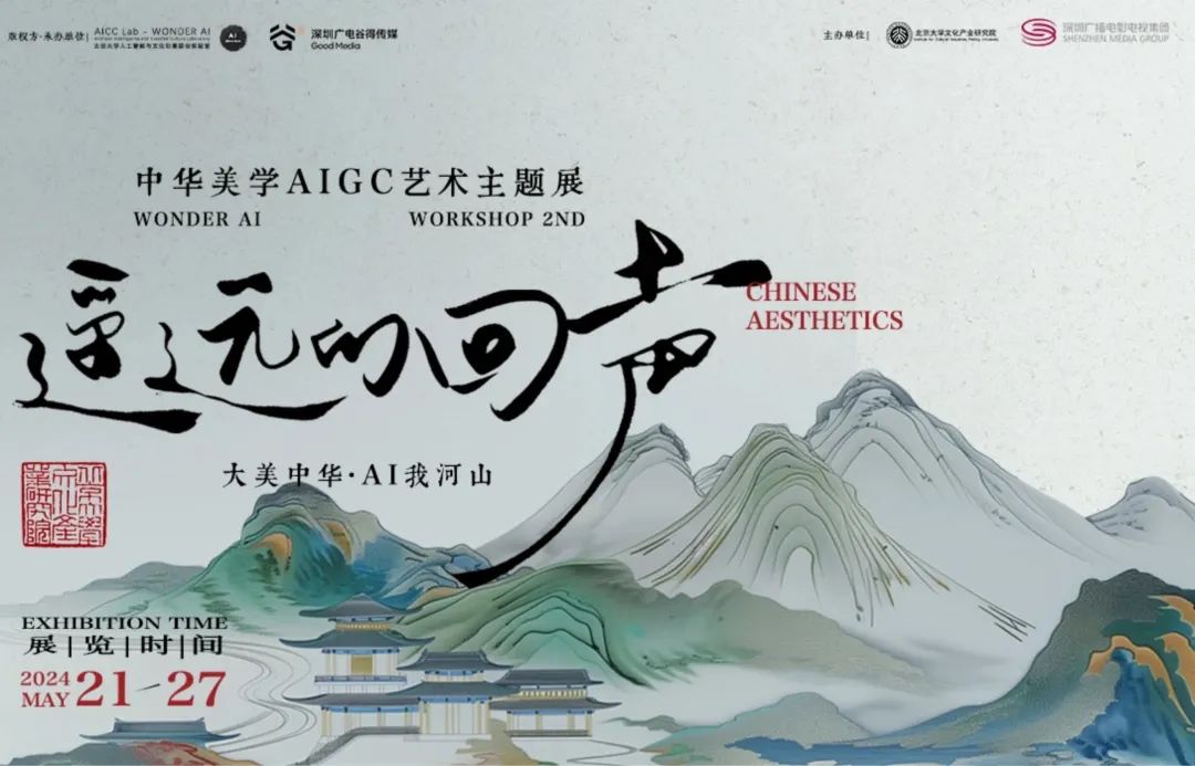 本次艺术展由北京大学文化产业研究院和深圳广播电影电视集团共同主办,北京大学人工智能与文化创意联合实验室与深圳广电谷得传媒有限公司承办。展览汇集了“Wonder Workshop-AIGC艺术创意工作坊”的优秀作品,通过“斯文在兹”、“大江东去”、“游园惊梦”和“与谁同坐”四个篇章,呈现了近70余件具有代表性的AIGC绘画、绘本及数码影像作品。