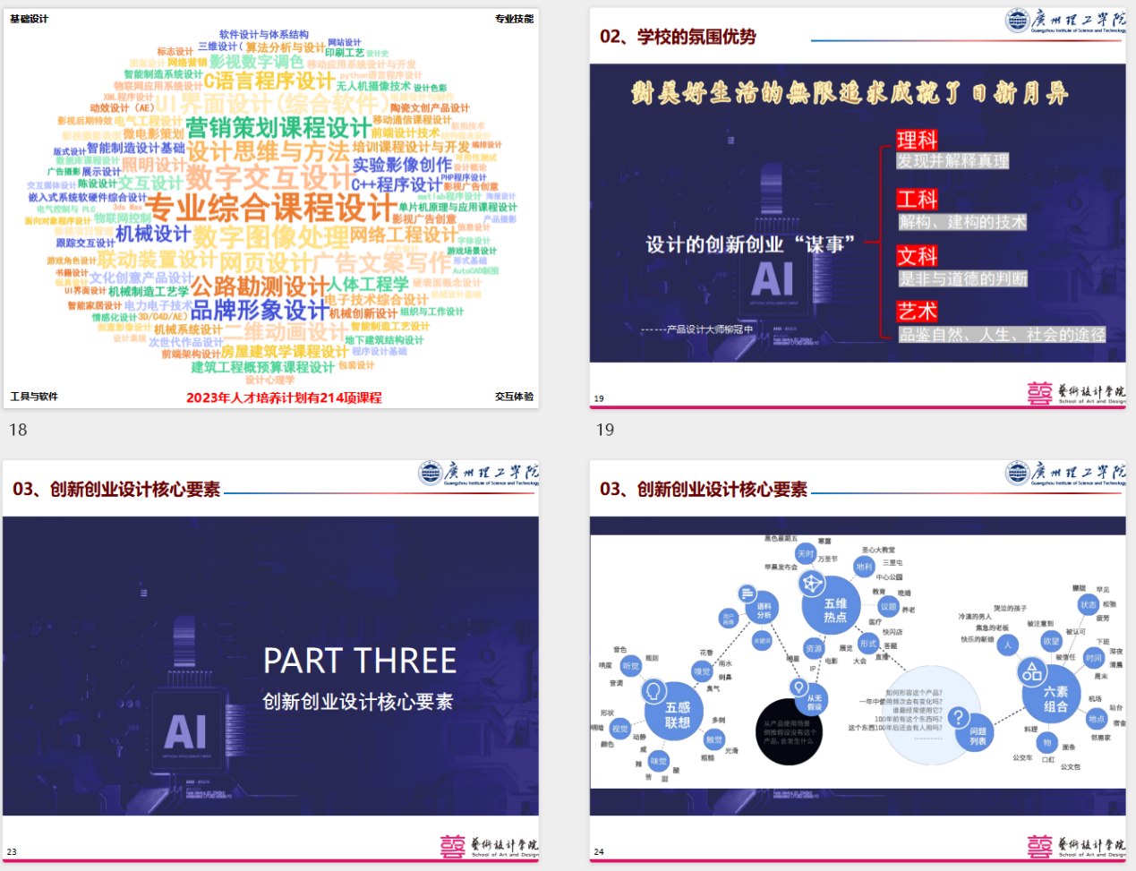 设计是存在于各行各业的,设计就是创新。在工业4.0时代,新质生产力阶段的高质量发展,更加需要能够运用AI技能的创新创业人才,而广理各级领导和教职员工,都在努力培养符合未来需求的知行合一、信息化素养高、实践能力强、具有创新创业意识的高素质应用型人才,建设特色鲜明的高水平地方性应用型大学。
