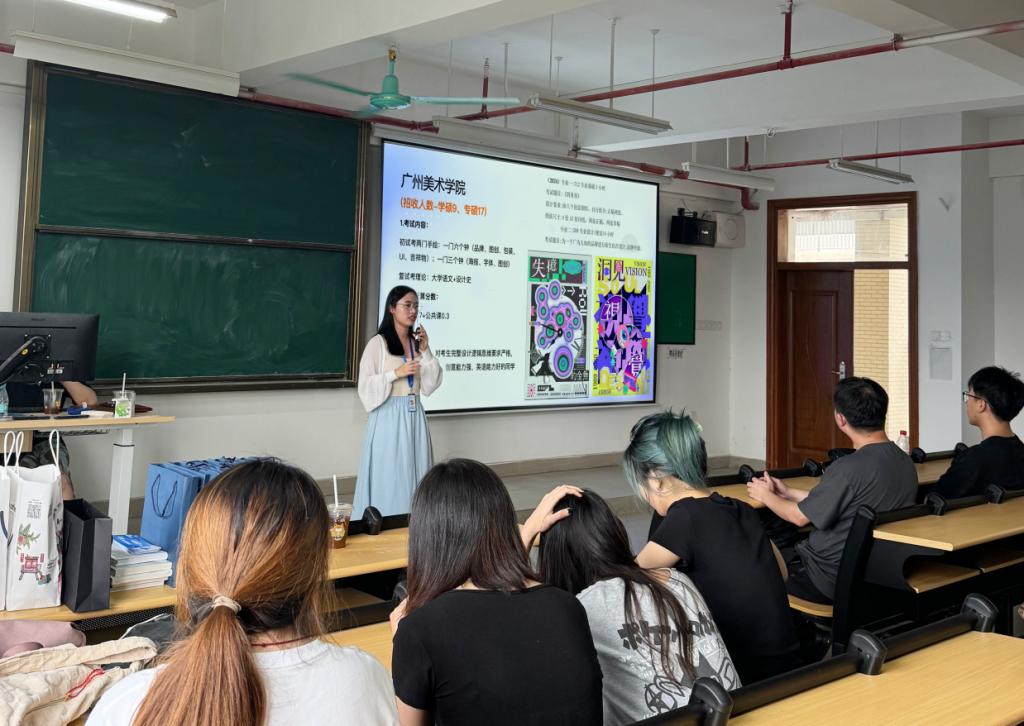 讲座的高潮部分,刘老师详细介绍了全国研究生入学考试的内容,并就调剂系统的运作机制进行了全面解读。她提醒学生,了解考试流程和调剂政策对于考研成功至关重要。在广东各大艺术类考研院校分析环节,刘老师从考试难度、考试内容、院校专业选择、地理位置、教学资源、报录比这几方面为学生提供了择校的宝贵建议。她鼓励学生根据自己的专业特长和发展方向,选择最适合自己的院校。