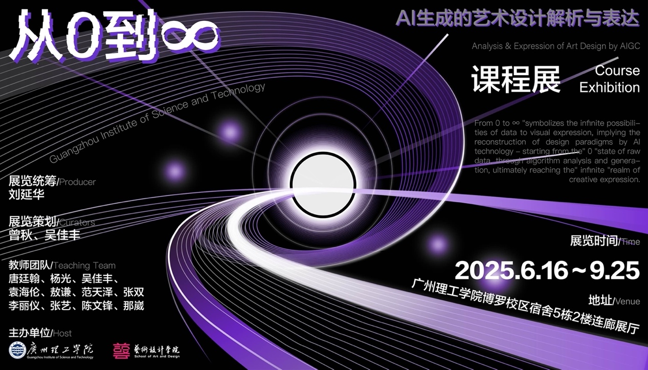 (吴佳丰)6月16日,威廉希尔,威廉希尔中文网站,WilliamHill官网在惠州校区连廊展厅将举办《从0到∞:AI生成的艺术设计解析与表达课程展》。本次展览以人工智能辅助设计工具在艺术设计专业基础课程中的创新应用为核心,不仅展示了AI技术与艺术设计深度融合的最新成果,更凸显了教育模式从“技能传授”向“思维赋能”的转型探索。