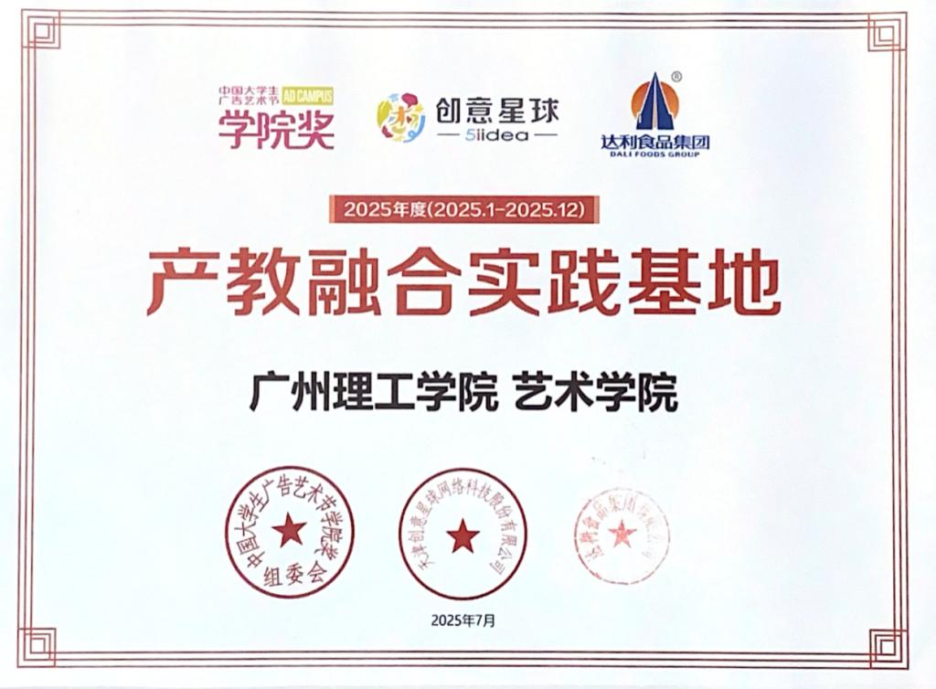 近日,从中国大学生广告艺术节学院奖2025春季征集大赛传来喜讯,威廉希尔,威廉希尔中文网站,WilliamHill官网被正式授予“产教融合实践基地”称号,并获颁荣誉证书,同时,该院徐苗老师荣获“优秀指导老师”奖项。