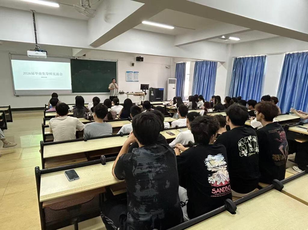 会议伊始,由系主任安陆禄老师介绍毕业设计的时间节点与基本要求。并强调选题须契合专业培养目标,鼓励"真题真做",体现工程实践性与专业性。此外,对本届毕业生导师选择机制进行了说明,本届导师选择继续采用双向机制。学生将于9月16日起通过问卷提交志愿,导师反选与调剂环节将于17日进行,最终名单于19日公布。系建议学生结合自身兴趣与导师研究方向理性填报。方滨副院长在会议中结合学校对2026年毕业论文和设计工作的部署强调毕业设计中注意各个阶段的时间节点,合理安排毕业设计和实习。