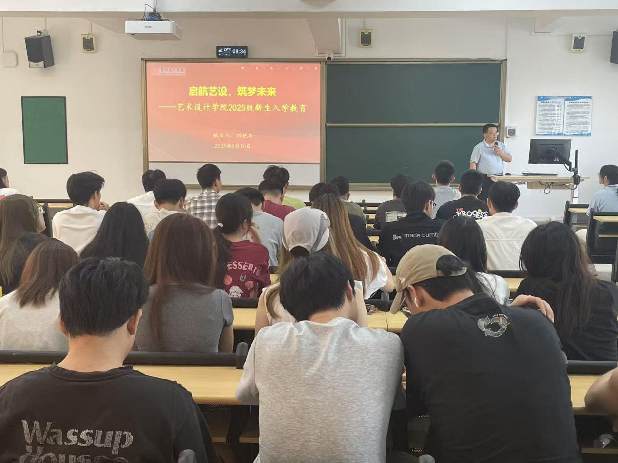 在展望学院发展前景时,刘延华副院长结合当前艺术设计行业的发展趋势,为新生们描绘了学院未来的发展蓝图。他表示,随着数字化、智能化技术在艺术设计领域的广泛应用,学院将进一步加强学科交叉融合,不断优化课程设置,增设人工智能设计、交互设计、可持续设计等前沿课程模块,培养适应行业发展需求的复合型艺术设计人才。同时,学院将继续深化校企合作,与更多国内外知名设计企业、机构建立长期稳定的合作关系,为同学们提供更多实习、就业机会,搭建起从校园到职场的桥梁。此外,学院还将积极推进国际交流与合作,引进国外先进的教学理念和资源,组织学生参与国际设计交流活动、海外研修项目等,拓宽同学们的国际视野,提升国际竞争力。