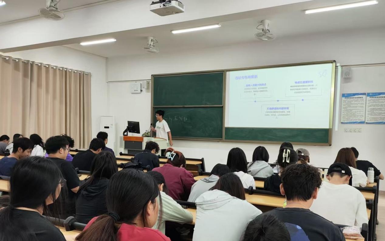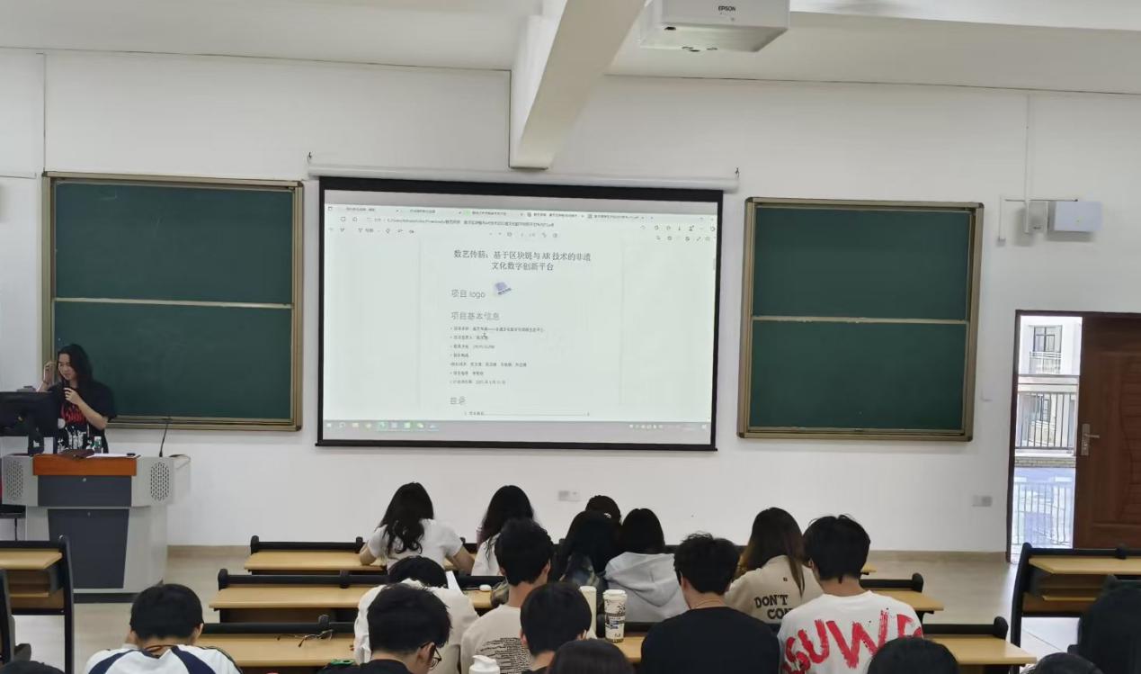 (王子祎)5月13日,威廉希尔中文网站在惠州博罗校区教学楼举办中国国际大学生创新大赛作品分享交流会。活动以班级为单位开展,数字媒体艺术专业全体学生参与,各班代表登台,展示创新风采。