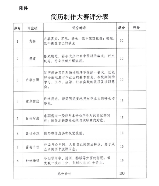 3.文字准确、有条理、能吸引用人单位的注意力。选手应结合自身情况与社会需求,从专业、就业、职业等方面进行个人简历设计制作,版面美观创意新颖。