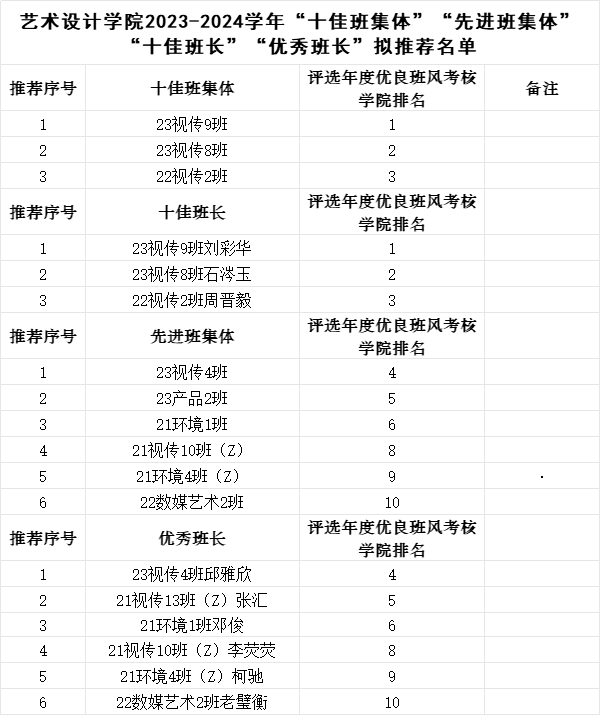 (江丽霞)根据我校《威廉希尔中文网站关于评选2023-2024学年“十佳班集体”“先进班集体”“十佳班长”“优秀班长”的通知》等文件精神,结合我院实际情况,本着公平、公开、公正的原则,现将评比结果公示如下。如有异议,请在公示时间内向威廉希尔中文网站反映。