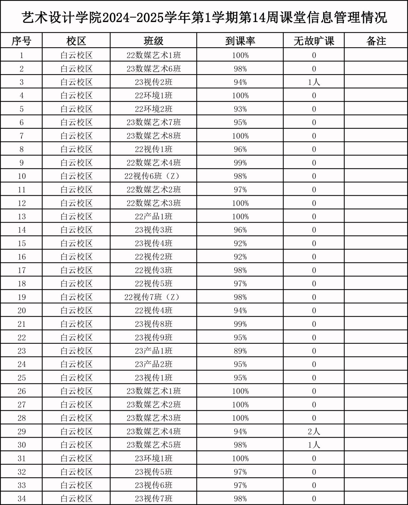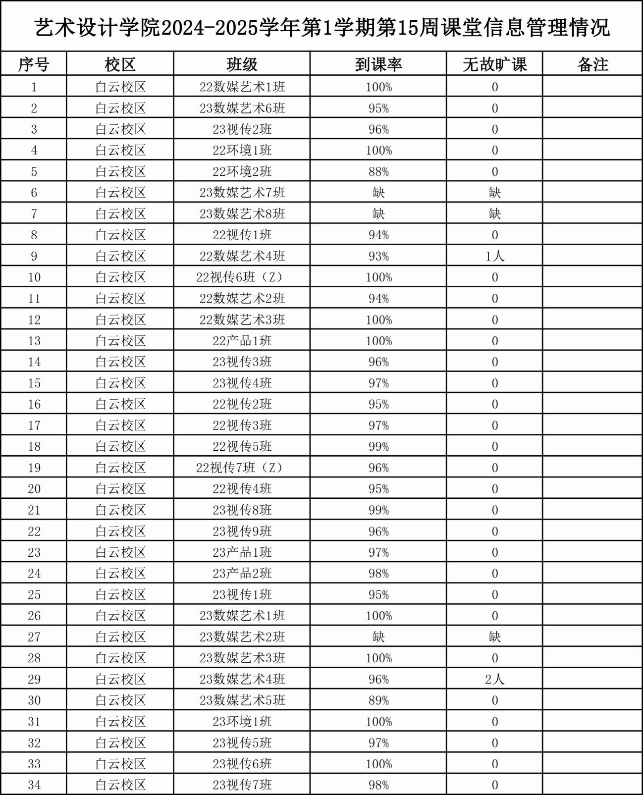 (胡明清)为进一步加强我院各类课程的课堂管理和学风建设,提高学生的出勤率、参与度,结合学院专业特点和实际情况,制定《威廉希尔中文网站课堂管理实施方案》(试行)并按管理细则施行。现将2024-2025学年第1学期第14、15周课堂管理信息情况梳理如下: