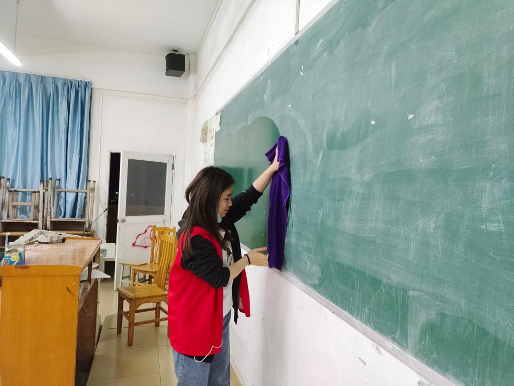 本次活动主要是对学生教室、学生画室进行清洁大清扫。在活动过程中,发展对象们清理历史遗留垃圾,用水反复擦拭黑板,全心投入在打扫清理工作当中,不留一处污渍,细心的清扫教室的各个角落,无死角的清扫教室卫生,使得教室焕然一新。参与该活动的发展对象们分片包干,充分发挥“不怕苦,不怕累”的精神。