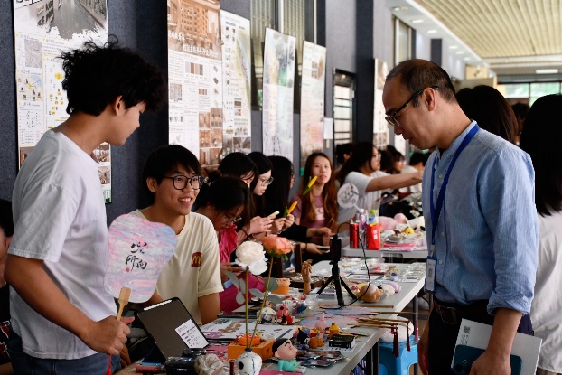 活动期间,方滨副院长、颜冬果书记带队深入调研,与创作者们亲切交流。在艺术展位前,方滨副院长点赞学生作品能够将专业学习成果转化为服务校园的文化产品,这正是应用型人才培养的生动实践。