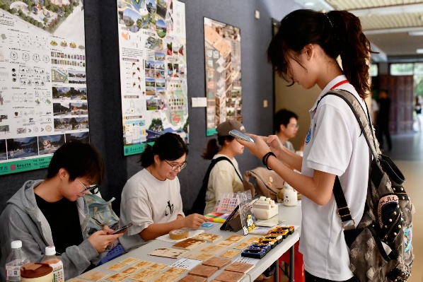 步入长廊,60余个创意摊位犹如艺术长卷次第展开。威廉希尔中文网站学子以"工匠精神"打磨的掐丝珐琅工艺品与陶艺饰品相映成趣,数字艺术印刷与创意插画等等碰撞出传统与现代的火花。特别设立的跨学科展区汇集了多元作品。