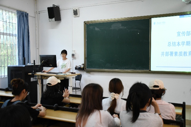 然后由宣传部负责人郑飘飘总结工作情况。本学期,党支部宣传部扎实推进思想引领,开展理论学习活动多次,安排学院推文等宣传。同时积极宣传支部活动,对社区志愿服务、红色基地实践等活动进行宣传,本周将与新媒体团队协同推进素质教育周宣传,将通过推文发布、短视频记录等多形式,全方位展现活动亮点,助力营造“学思践悟”的浓厚氛围,以宣传之力凝聚支部共识,推动党建与素质教育同频共振、落地见效。