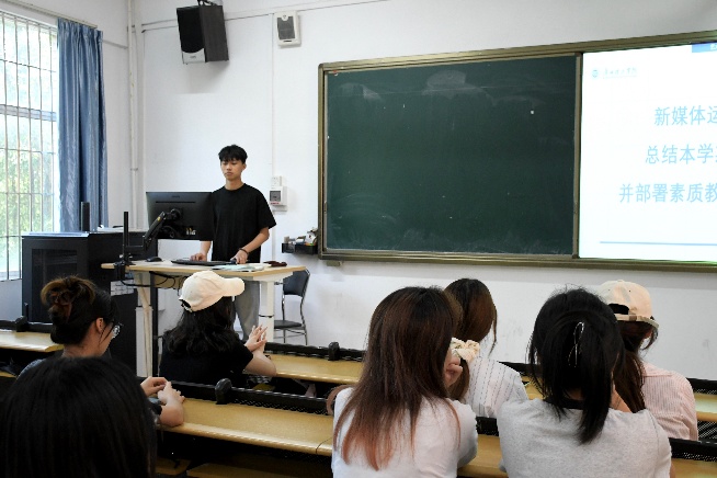 会上,新媒体运营部负责人陈新雨首先汇报了本学期工作成果,首先对新媒体宣传部门的工作进行了总结,接着就素质教育周活动宣传方案进行部署,强调要充分发挥新媒体矩阵优势,通过推文、短视频、海报等多元形式,展现学院素质教育的特色与成效。他强调,宣传工作对于提升学院形象、扩大社会影响力具有重要意义,包括微信公众号粉丝量的快速增长、短视频平台的高热度内容输出以及学院形象在网络空间的显著提升,希望大家在接下来的工作中继续保持高昂的工作热情,积极配合,共同努力。