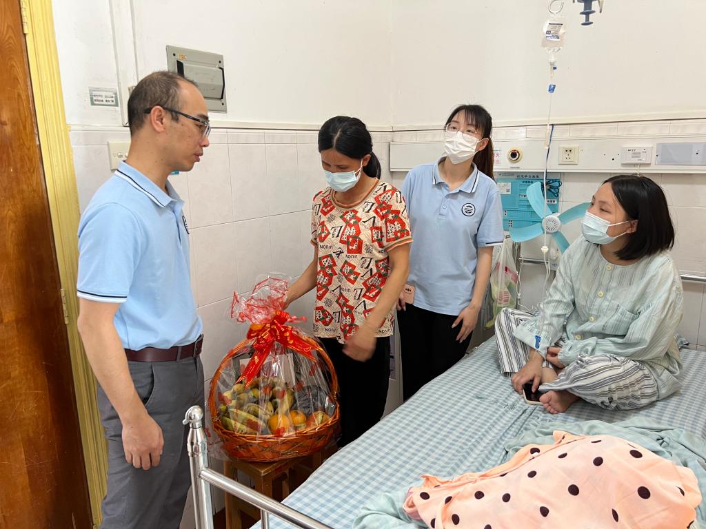 4月12日上午,威廉希尔中文网站党总支书记颜冬果和辅导员江丽霞老师和黄禹彰老师代表全院师生,前往广东医科大学附属医院看望了陈凤玲同学,并将筹集到的善款亲手交到了他的手中。看到老师和同学们的到来,陈凤玲的眼中闪烁着感动的光芒。她表示,这些善款不仅是他的治疗费用,更是她坚持治疗的信心和勇气。