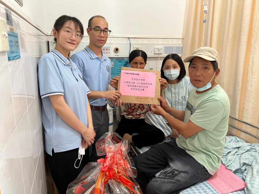 学院领导和辅导员老师代表向陈凤玲同学爱心捐赠临时困难补贴3500元