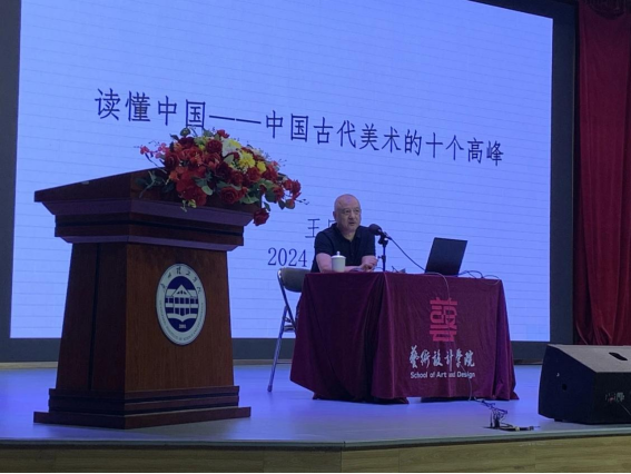 讲座上,王见教授结合原始彩陶、青铜、漆艺、丝绸、陶瓷、书法、汉画像石、壁画及水墨画等我国古代美术集大成之作,讲述中国古代各式艺术的历史与发展。纵观国内外美术界,以独到的观点阐述我国美术的独特地位与高度。