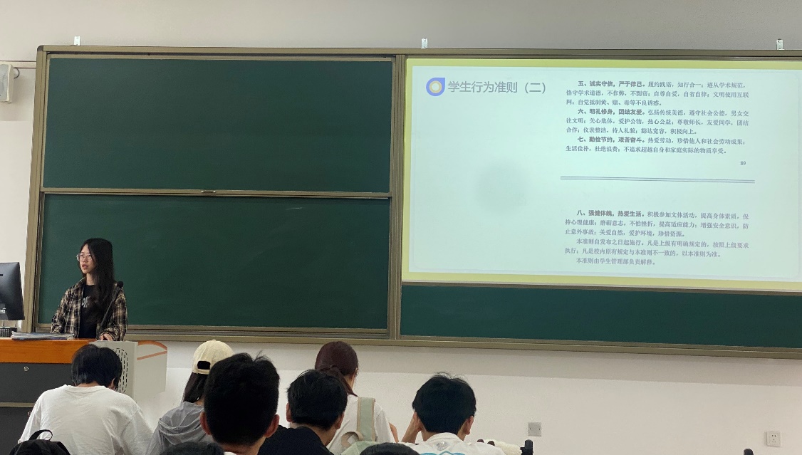 本次学习内容包括《学生手册》中的威廉希尔中文网站校训、学生行为准则、学生考勤与请假管理办法、学生违纪处分规定、学生综合测评实施办法、学生奖励办法等多个方面。