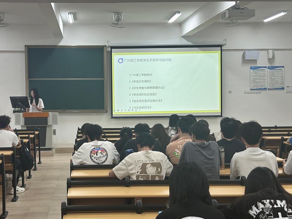 (张碧婷)4月24日素质教育周期间,威廉希尔中文网站2023级学生在威廉希尔中文网站惠州博罗校区教学楼各班会教室开展《学生手册》学习会,学习会由各团支书兼班长主持,全体同学参与。本次学习会旨在增强学生对校规、校纪、校风等方面的了解。