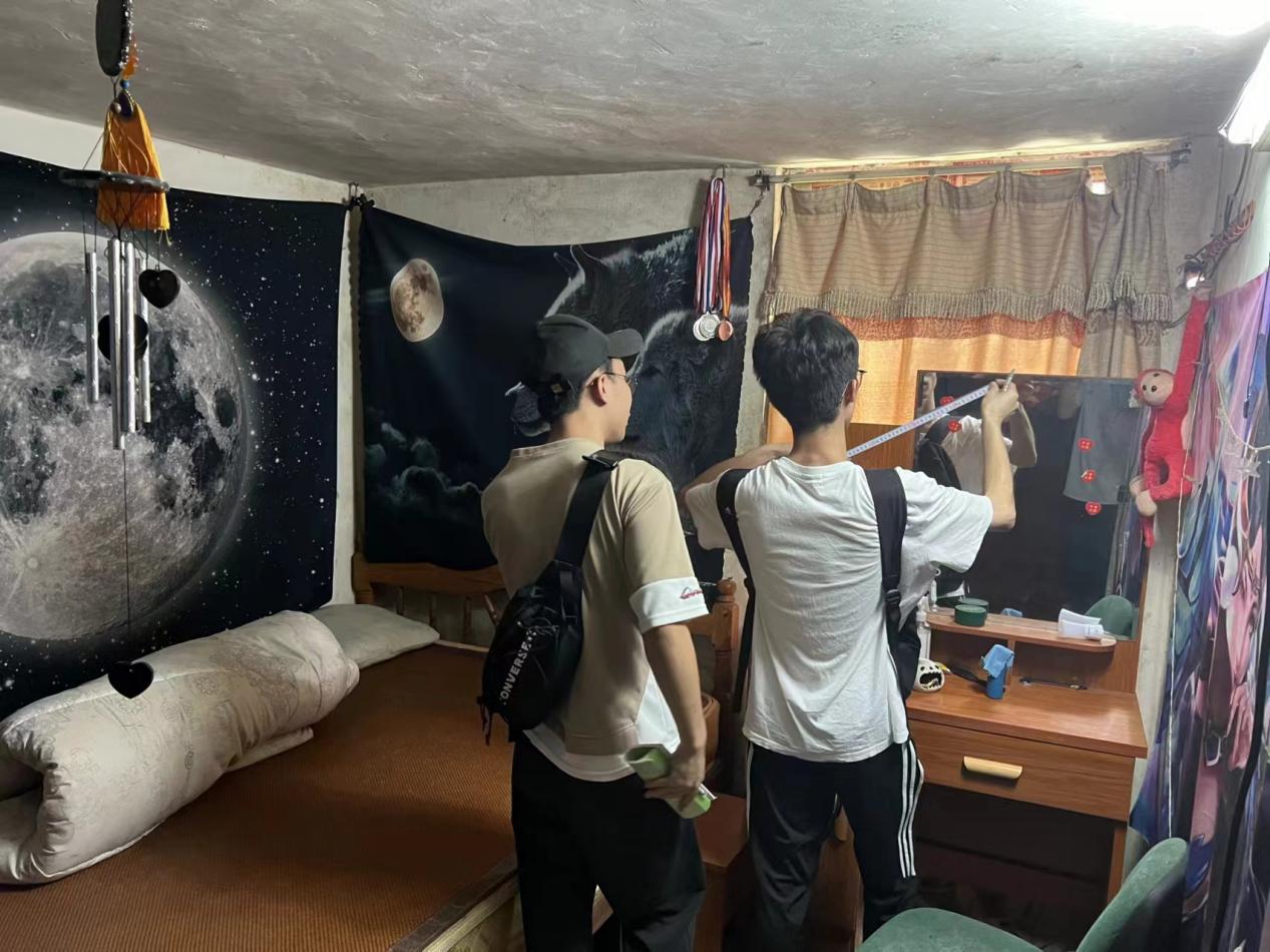 活动当天,白颖教师率领的室内调研小组与户主进行了亲切交谈,详细了解了他们的日常生活习惯、改造需求及房屋存在的问题。同学们在教师的指导下,分别对两间房屋进行了精确的入户测量,并对房屋的基本结构进行了安全性排查。结合户主的实际需求,他们现场评估了改造的可行性,并初步制定了改造方案。