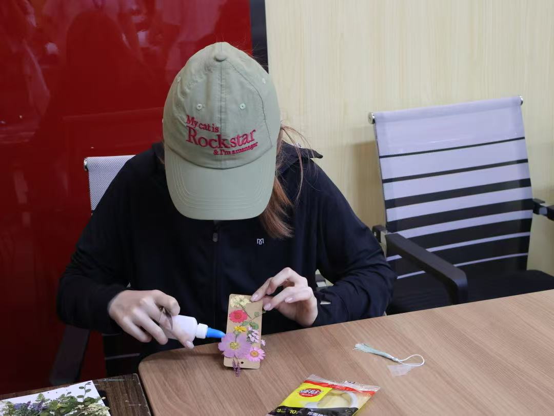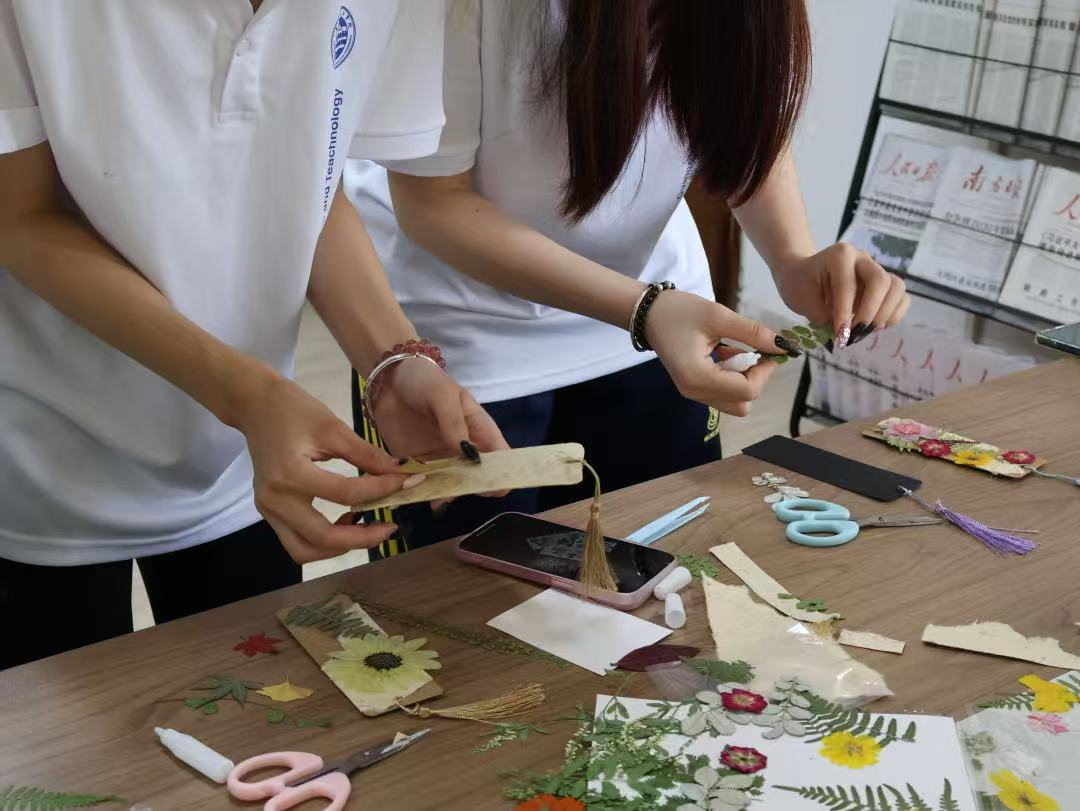 活动伊始,党支部成员向同学们介绍了本次活动的意义与制作流程,强调通过叶子书签制作,将自然之美与艺术创作相结合,培养创新思维与环保意识。随后,黄禹彰老师从艺术构图、色彩搭配等方面进行讲解,陈晓芬老师则详细示范了叶子处理、书签装饰等制作技巧,让同学们对书签制作有了更清晰的认识。