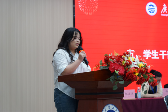 学生代表陈慧敏在动员大会上发言,她以学生干部身份发出倡议,号召全体党员亮身份、做表率,学生干部扛责任、显担当。她重点提出两项要求:一是严守课堂纪律,不迟到早退,规范手机使用,专注高效学习;二是规范日常行为,杜绝拖鞋进教室,保持环境整洁,做到文明有礼。她呼吁大家以严谨态度和务实作风,营造优良学习氛围,以最佳状态迎接本科教学工作合格评估,共同为学校发展和自身成长贡献青春力量。