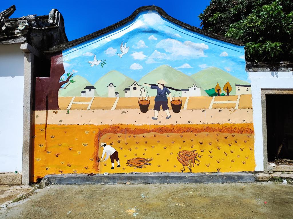 始建于宋朝年间的苏二村,由潭边、后田、人家、埔上、田东和扬美6个自然村组成,全村449户、人囗1868人。2017年以来,苏二村以“创建省卫生村”为目标,大力改变村容村貌,以产业兴旺、生态宜居、乡风文明、治理有效、生活富裕为要求,不断加强村容村貌的整治,乡村振兴成就瞩目。实践队结合苏二村的整体环境、村情民情等方面进行综合考量,以墙为布画美乡村。