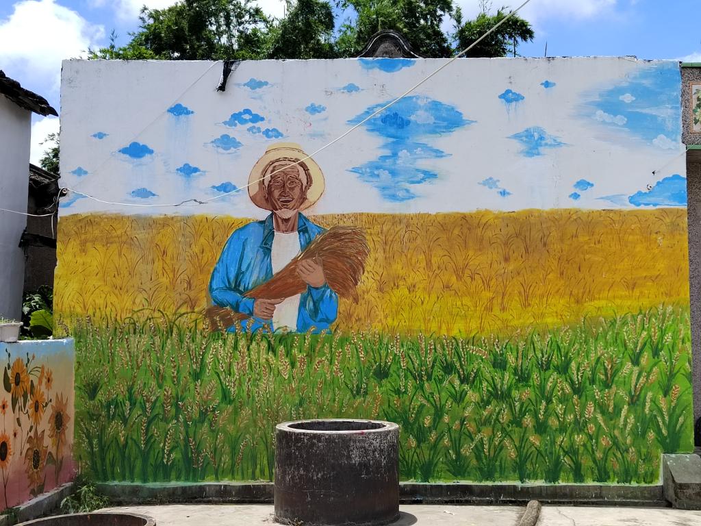 实践队员在6天的时间里面,绘制了5组大型作品,分别为满载而归、五谷丰登、潮州风物、沃野千里、欣欣向荣。栩栩如生的墙绘背后离不开团队协同和强大的凝聚向心力,队员们迎日而出、踏月而归,互相帮助配合,闷热的伞下挥舞画笔,勾勒线条、涂抹色彩、塑造细节,将独属于夏天的活力在此尽情挥洒碰撞。一幅幅体现农村新貌的画卷,让苏二村的传统文化能够更好地展现出来,村容村貌得到了至美的提升,成果得到了苏二村村民及村委会领导的高度认可与赞扬。村委书记邱奕彬希望实践队在下一个假期继续开展墙绘活动,留下制作更多的墙绘作品,继续参与苏二村推进精神文明建设。
