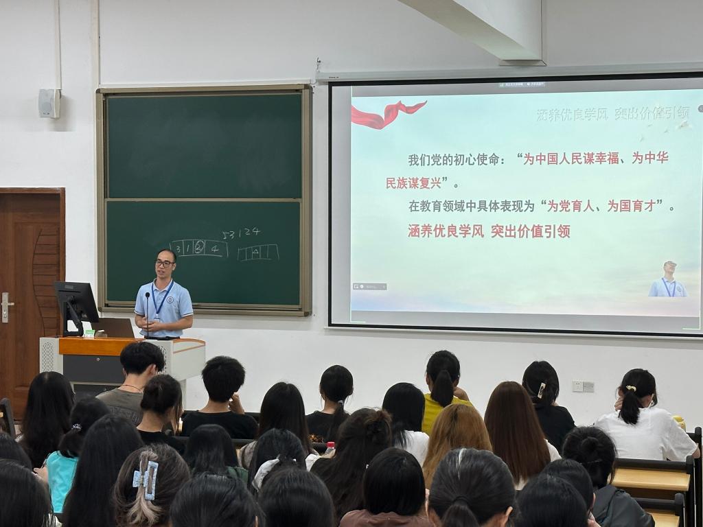 (黄禹彰)为上好新生开学第一课,营造良好的学风、院风,提升学生思想修养,引导学生爱国爱党,兴校荣校。9月11日晚,威廉希尔中文网站党总支在威廉希尔中文网站惠州校区教学楼开展了以“涵养优良学风,突出价值引领”为主题的学风和院风建设讲座。学院党总支副书记颜冬果主讲,学院2023级全体新生和惠州校区辅导员聆听讲座,此次讲座形式为线上和线下结合,主会场在教学楼208教室。