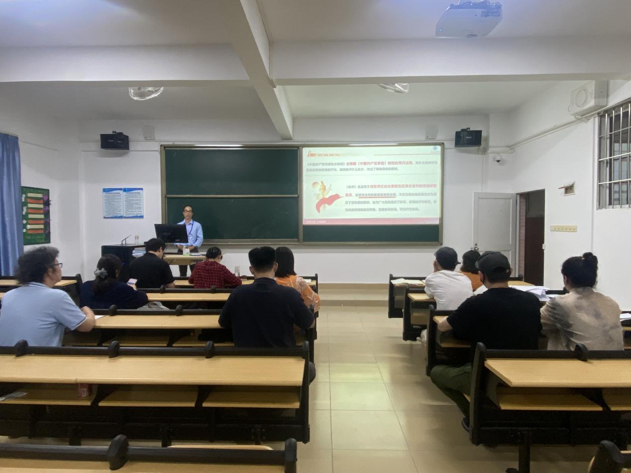 (黄禹彰)为深入学习贯彻习近平总书记关于党纪学习教育的重要讲话和重要指示精神,党总支理论中心组于5月23日下午在7-401召开召开《中国共产党纪律处分条例》专题学习会。会议由党总支副书记颜冬果主持并领学,党总支理论中心组全体成员参会。